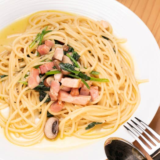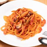 ナポリタンの具材はたまねぎ、ソーセージ、マッシュルーム。