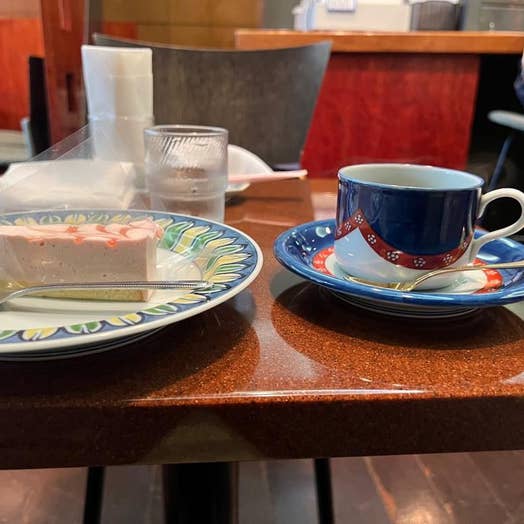 トマトの濃厚で甘めのナポリタン、中太のもちもち麺によく絡みます。久々にたべたけどナポリタン、とても美味しかったです。