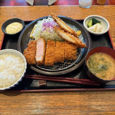 カフェ パンケーキ 洋食 1000投稿 KANA.E とんかつ味噌汁キャベツご飯お代わり自由一之江ランチ週替わり定食、1280円。ロースとヒレ、お肉柔らかジューシーです。美味しかった〜 #とんかつ #味噌汁キャベツご飯お代わり自由 #一之江ランチ