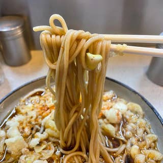 たぬきそば 410円 神田で、朝食をいただきます。 お盆なので、比較的に電車が空いてます(^^) ですが、山手線が安全確認のため止まってる。 今日は新橋で降りて、未訪店に行く予定を変更し、神田で下車して御茶ノ水方面に。 その途中にある「かめや」を覗くと、閑散としている。 予定変更、こちらに訪問します。 7時8分入店、先客1人、後客5人。 東口店はたまに伺いますが、西口店は約8年ぶり の再訪(^^;; たぬきそばをオーダー、キャッシュオン払い。 天かすたっぷり、めっちゃ色白。 色見寂しく、唐辛子でお色直し(^^) カエシの効いたつゆ、わたしにはちょっとえんみ が強く感じます。 蕎麦は、鉄板のおいしさ。(^^) 天かすが大きくて、つゆに負けないので、最後までサクサクが残るのがいい。 また来ますね。 おいしくいただきました〜 2024年8月14日朝食にて利用 3.49