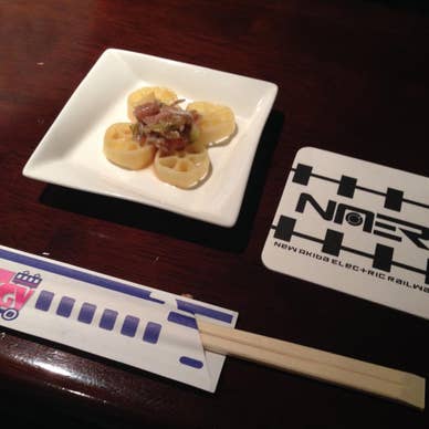 10月14日は、何の日かご存知でしょうか? 今から、140余年前に新橋〜横浜間に鉄道が 開通した、鉄道の日。 偶々ですが、この日コチラに。 19時に予約して、訪問です。 因みに、メイド系のお店ではありません。(^^;; 店員さんは、肖像権の兼ね合いで撮影はNG。 硬券の入場券を渡されて、入店時に鋏入れ。 鉄道の日という事もあり、フジテレビの取材 が入っていました。 撮影NGの可否を確認されましたが、無問題。 なので、しっかりテレビに映ってしまいまし た〜(^^;; メニューが、路線図になっていて面白い。 料理も遊び心があって、とても和みます。 そして料理がおいしい、コレいいですね。 鉄道関連のパーツやグッズ、写真などがあり、 店員さんの鉄道知識のレベル高めで、中々 面白かったです。 楽しい体験、そのあとフジテレビのニュース を見て自分が映っているの見て、楽しさ倍増。 おいしくいただきました〜ψ(`∇´)ψ 2015年10月14日鉄道の日に利用
