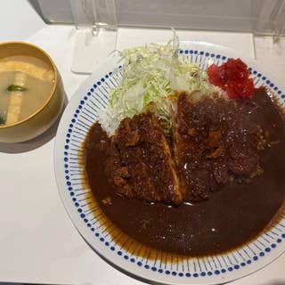 平日ランチタイムに来店。少し並んでましたがそんなに待つことなく入れました。店出る時には空席もあり。 一番人気らしいカツカレーを注文。キャベツ、福神漬け、とんかつが乗ったカレー。味噌汁も付いてきます。 カレーは熱々、カツもしっかり美味しい。十分な量でした。カツ丼もちょっと気になるところ。