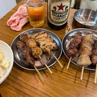 やきとん6本盛り+瓶ビール。 安定の美味しいやきとん