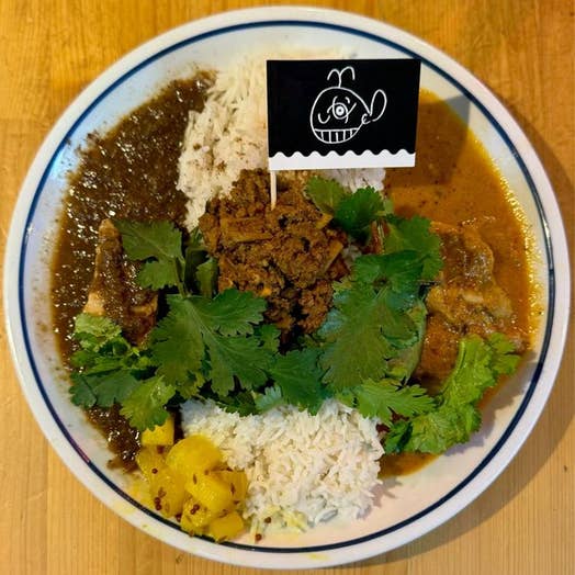 こちらは、日本人が提供する日本式のインドカレーですね。チキンティッカの提供や、カレーにアチャールの副菜がついたりしますのでやはりインド風ですよね。自家製ラッシーもありました。
