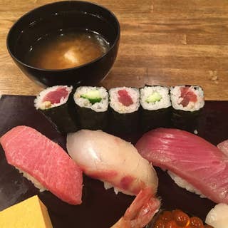 TOP USER目黒 イタリアン 和食 喫茶店 1000投稿 鈴木康善 食欲の秋目黒雅叙園から山手通りにぶつかる一本前の通り沿いにある、お寿司屋さんです。ランチはベテランの板前さん二人でやっています。三年前にRettyを始めたばかりの頃以来のランチ訪問で、米国から来日したトレーニングの先生を交えての、グループランチで使いました。 ランチ握りセットをいただきました。マグロ、タイ アジ、イクラ、ホタテ、鉄火・カッパ巻と、どれも本物の素晴らしい味です。シジミの味噌汁もイイですね〜 味は保証致しますが、ランチで¥2500しますのでご注意を(^o^) #食欲の秋