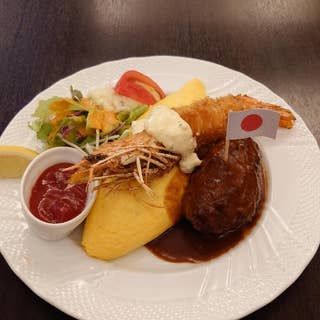 【注文したメニュー】 洋食屋のドリームプレート:税込2,700円 今回注文したのは、広尾本店限定の特別メニューで、“大人のお子様ランチ”と言われています。 オムライスは、薄焼き卵で優しく包まれた王道スタイルで、中のチキンライスは、ケチャップの酸味と甘みのバランスが絶妙でした。 外側の卵はとろりと柔らかく、口に入れるとまろやかなコクが広がりました。 ハンバーグは、国産牛と豚肉を丁寧に手ごねし、外は香ばしく中はふっくらジューシーです。 切ると中から肉汁が溢れ出し、濃厚なデミグラスソースと絡み合って至福の味わいになりました。 有頭エビフライは、サクサクの衣の中にプリッと弾力のある身が詰まっていて最高でした。 自家製のタルタルソースはコクがあり、海老の甘みを引き立てていました。