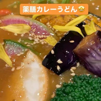 明るくて爽やかな店内、夜の雰囲気じゃないけど常連さんらしき方々がお酒を飲みながら歓談してて、〆うどんを頼んでました。薬膳カレーが看板メニューだそうで、鮮やかな彩りのお野菜や散らした菊の花びらが女子のハートを射止めます。 1280円かな?でも、SNS投稿キャンペーンでアイスサービスしてくれ、クイックペイ支払いで10%offに!お冷やがわりにたっぷりと入れたての薬膳茶をだしてくれ、うどん代だけで安上がりでした!