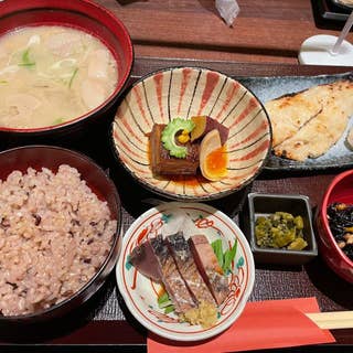 アイス 海鮮料理 イタリアン 500投稿 Y.Nakada 日本橋ランチ! 沖縄料理のお店と聞いていましたが、九州の料理がたくさんあるお店です。 今回はランチだったので、美味しそうなお酒はまた今度の機会に! 桜島御膳 1,500円 (鰹のたたき、豚汁、ラフティー、焼魚、ひじき) ごはんは白米、玄米、ココナッツオイル玄米から選べます。ココナッツオイル玄米ってどんな感じ??って思い、通常玄米にしました。 女性陣は玄米選択する方が多く、早めになくなってしまうようです。 豚汁は大根やにんじん、豚肉など具材が大きめに切ってあり、ボリューム満点! ラフティーはかなり染みてて、味が濃いのですが、とても美味しく、めちゃくちゃごはんが進みます。 焼魚は西京焼きで、塩っけと甘味のバランスが良く、これもまたごはんがすすむすすむ! すごく美味しかった。 鰹のタタキも新鮮で、贅沢な箸休め的な感じでいただけました。 トータルして大満足! 美味しい九州+沖縄を一食で味わえちゃう最高なごはんでした。 唐揚げも麹効かせて柔らかそうで美味しそうだったなぁ。また行きたいお店! ごちそうさまでした。
