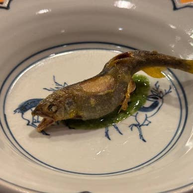 親しい取引先とカジュアル会食。 肩肘張らずに使える割烹料理店です。 店主オススメの日本酒も好み。 ここでも寒菊TrueRedでした。 お椀には焼き茄子と甘酸っぱい青梅入ってます。 お作りは佐島の鯛と八丈島のシマアジ、クロムツ。 自家製の土佐醤油が熟成感ありました。 牛蒡を鱧で巻いた八幡巻きを更に挙げたもの。 馬鈴薯饅頭の中には牛タンと玉葱の練り物入り。 玉葱苦手なのに、これは美味しくたべられました。 最後の食事はこのお店名物の鯛茶漬け。 出汁多めでうまうまです。 デザートまでこだわり有りの優等生的お店。