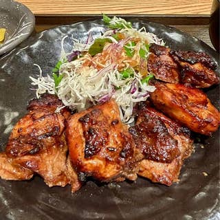 限定10食の三重鮮魚の漁師風飯を狙ってましたが当然 売り切れなので松坂名物!鳥焼き定食1300円をご飯サービス大盛で注文しました, 松坂牛に比べ安価な鳥肉を使用した鳥焼きは庶民に親しまれ松坂市のソールフードと言われる様になったそうです, 甘辛の味噌ダレに漬け込んだ若鶏を香ばしく焼き上げオンザライスで頂くとご飯が進みます,お代わり無料のご飯を大盛でお願いして漬物と味噌汁を箸休めにお腹いっぱい美味しく頂きましたd(´ڡ`๑)