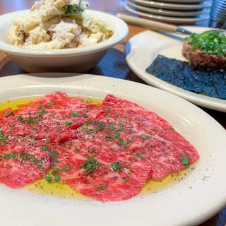 生肉が食べられるグリルレストラン。日本橋三越本店の目と鼻の先、日本橋の橋のたもとという、好立地。すごいパワースポット。この辺りは地場がとてもいいんですよ~ 日本橋の橋のたもとにひっそり佇むオシャレなレストラン。2つの業態から構成され、1Fはグリル(生肉とステーキとワイン)B1は焼肉(生肉と焼肉とワインのお店)。今回は1階グリルでステーキを。 ・キノコスープ ・ブラータチーズとフルーツトマトのカプレーゼ ・牛ハツのなめろう ・半殺しシーザーサラダ ・和牛のカルパッチョ(ハーフ) ・パテドカンパーニュ(レバーのパテ) ・メイン A5ステーキ ・石焼クアトロチーズリゾット 先日、小竹向原でチーズ石焼ビビンバを食べて感動しましたが、この度は、石焼チーズリゾット! チーズリゾット、チーズ石焼ビビンバ、美味しい~~~!チーズ入れないとね!! 系列店で”半殺しキムチ”に圧倒されましたが、こちらでは、”半殺しシーザーサラダ”がめちゃくちゃ美味しい。”半殺し”というのは、生さが残ってますよ~生でシャキシャキですよ~という感じ。 メイン A5ステーキは熱々の焼かれたお皿そのままで登場!焼肉屋と肉の卸しのスペシャリストが目利きし仕入れた極上A5牝和牛。保健所生肉許可取得済みの新鮮な最高ランクの和牛生肉、炭火グリルで火入れした極上ステーキ、ワンランク上の極上A5牝牛和牛ステーキがこちらのウリです。 店長さんのスタッフさんもとーってもホスピタリティ抜群で、また絶対に来たいと思わせてくれるお店です。 まかないもめちゃくちゃ美味しいそうです。働いてみたいな~ディナー、誕生日、デート、記念日、会食、2軒目にいいですね。