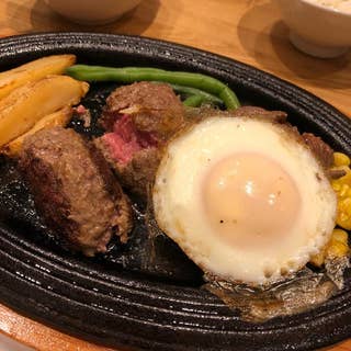 一頭買いで仕入れた上質な黒毛和牛A5雌牛を、 溶岩でジューシーに焼き上げる焼肉屋さん。 田町店は2019年11月7日にオープン。 緊急事態宣言下ではテイクアウトもやってます。 ◎黒毛和種メス牛100%ハンバーグ(ダブル) 1480円 始めて入った焼肉屋さんのランチはハンバーグで様子見。 メス牛にこだわったハンバーグ300gが税込み千五百円。 値段からしたら本当に黒毛和牛のメス牛なのかな? って疑っちゃうけど、めちゃめちゃ旨かった!!! レアで焼かれたハンバーグは丸いまま登場するけど、 店員さんが間髪入れず切って鉄板に押し付ける。 一個は自家製オニオンソースで食べて、 一個はテーブルの塩コショウで食べることを薦められる。 オニオンソースでも旨いけど、 塩コショウめっちゃ旨いです!!! 肉本来の旨味爆発的に旨いっす!!! これで税込み1480円はめっちゃコスパ高いんじゃない。