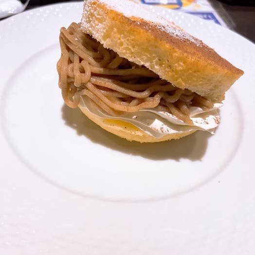 カシスのシャーベットをベースにしたモンブランパフェで、カシスの酸味が栗の風味を上手く引き立てています。