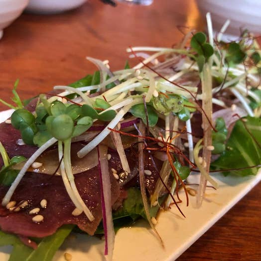 #白子 #白子ポン酢 #白子天ぷら #乙女牛のリブロースステーキ #初孫 #日本酒