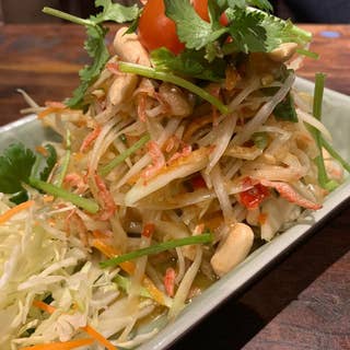 新橋駅近くにあるタイ料理バルは、タイと日本で46年、30年それぞれ腕を磨いた本場仕込みのシェフが手がける一軒です。塩・甘味・酸味・辛味のバランスが絶妙で、ラム肉が香ばしいラムヤーンや、新鮮な貝を使ったホイヌンマナオなど、工夫のあるタイらしいメニューが豊富。ソムタムタイは希望すればしっかり辛味を効かせつつも、初心者でも食べやすい味わいです。もち米やデザートのタロイモプリンも本格的で、料理に添えた驚きや感動があります。お酒の種類も多く『タイ飲み』にも最適ですが、カウンター席があり一人でも気軽に利用でき、接客も親切で心地よい時間が過ごせます。テイクアウト対応やキャッシュレス決済もOK、カジュアルなデートや一人飲み、ご飯のいずれにもフィットするお店です。