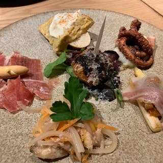 いつも通りに美味しい^_^ 期待を常に上回る創作意欲が頼もしい! 充実の逸品が並びます! フランスパンの皮のコンガリ具合が素晴らしい マッシュルームの香りでやられる奴 スペインの白も侮れません ブリの皮目の香りが憎い 内腿の赤身は旨し