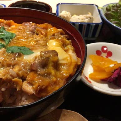 名古屋コーチンを使った本格焼き鳥が食べられる人気店です。ランチにいただいた、炭火焼きの鶏肉にたまごトロトロの親子丼。ん、めっちゃ美味しい。
