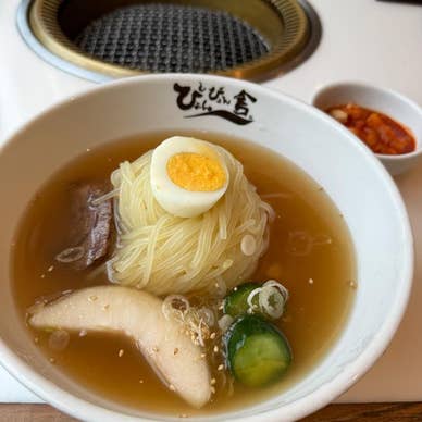 ぴょんぴょん舎 GINZA UNA ゴールドウインのファミリーセールから銀座で妻と買い物。 暑くて何か冷たいものが食べたいと検索したら何と、 去年、岩手に法事で行った時に、親戚のおばちゃんから「ぴょんぴょん舎の冷麺、お土産におすすめよ〜!」と勧められて買って帰ったのがきっかけで、ずっと気になっていた「ぴょんぴょん舎」があるとのことで突撃。 そしたら受付で1時間半待ちとの表示。。。 そんなにかからないだろうと並びましたが1時間は待ちました涼しかったのが助かりました 予約はできるみたいです。 やっと入店。ランチセットを頼んで少し待ったらやっと運ばれてきました 1時間待った料理は果たして、、、 キンキンに冷えたスープと、つるつるのコシ強めの麺。ゆで卵、きゅうりまさに暑さを吹き飛ばす一杯。 冷麺ってこんなに完成された料理だったんだ…と感動 銀座「GINZA UNA」の中にある店舗で、焼肉メニューも一緒に楽しめる落ち着いた空間。冷麺とサラダ、ナムルのセットが最高の組み合わせでした。 ※肉の写真撮り忘れました 最高の夏のランチタイムでした 次回は予約します笑 #ぴょんぴょん舎 #冷麺 #銀座 #ランチ