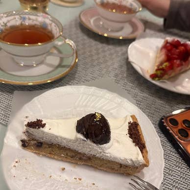 かなり久々のキルフェボンさんです✰ ランチ後に行ってきました(. ❛ ᴗ ❛.)♪ もう、どれも美味しそう過ぎてかなり迷いますが、 やはり旬の桃! ということで注文は『桃とチーズのタルト』 一口目から桃のジャムの甘酸っぱさとクリームのこってり感が凄く濃厚(o♡∀♡)。*✧ 瑞々しい桃が甘さを調和するので、しつこくなく、サックリなタルト生地も口直しになって、ついゆっくり味わってしまった!笑 お連れさまは『ゆずとヨーグルトのタルト』 一口目いただきましたが、これまた爽やかな柚子の風味とヨーグルトのムースが暑い季節にもピッタリでヤミツキ(〃゚3゚〃)☆ ドリンクはアイスの『アールグレイ』 華やかな香りとしっかりした味わいが、タルトの甘さとマッチしておかわりしたくなる美味しさ✧ 店内も明るく広々してて、ゆっくりできます(´ε` )*。✼ この日は日曜の14時過ぎで30分ほど待ちましたが、滞在が90分の制限あるので長居しがちの方は注意! 他のタルトも制覇したいのでまた行こう(ʃƪ^3^)♪