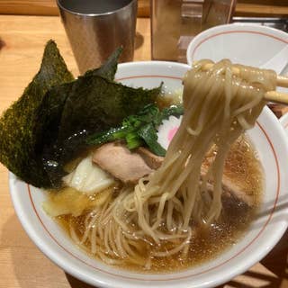 2024/5/11 銀座 篝(かがり)の隣、知る人ぞ知るラーメン、銀座 嚆矢(こうし)、気になってて初めて訪れました。列はなしてないけど、ラーメンの数が決まってて、スープがなくなったら終わりという心意気、間に合ってよかった。メニューは煮干しラーメンと鹿児島黒豚出汁スープベースのとんこつラーメンの二本柱。最もシンプルな煮干しラーメンをオーダー。自販機でキャッシュレス。カウンター8席オンリー、すでに取り分け用の小椀とレンゲがセットされている(ここは猫舌の外国人意識してるか?)まもなくして熱々の煮干しラーメン登場。スープ…うーん、ノンアニマルという標榜通り100%煮干しの味。少し魚の腹の渋みも感じるほどのこだわり。麺はびっくりするほどのストレート麺。ひやむぎを彷彿させるつるりとした食感です。美味いっ!まさに和の味です。麺の量も多めで満足度たかい 。加えて、ご飯がサービスとのこと。これもなかなか美味いご飯。ラーメンにトッピングされた味のりと一緒に食べると絶妙〜。チャーシューは鹿児島の黒豚と埼玉の白豚の掛け合わせらしい。歯応え重視の濃い味でしたー。ご主人は寡黙な感じですが、美味しいですというとハニカミながらありがとうございます、と。これで1,200円。高いものでも1,500円超えない。隣の篝が2,000円超えるのに対し、味もコストも差別化戦略ですね、ありがたいプライスです。心から素直に美味しかったとお伝えしました。