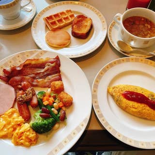 日本で初めて「バイキング」というスタイルを生みだした、帝国ホテルのビュッフェレストラン。 実に12年ぶりの訪問です。 以前は結構頻繁に来ていたのですが、どんどん値上がりしてしまい、ちょっと足が遠のいてしまいました(^^;; 今回は、モーニングの利用。 訪問時点では、7:00〜9:30で、6500円。 ちなみに、ランチは平日12000円、土日祝日14000円。ディナーは平日17000円、土日祝日19000円です。 ランチやディナーに比べると、モーニングが格安に見えますね(^^;; 開店時刻の少し前に到着。 すでに何人もまっていますが、ほぼ宿泊客。 宿泊していない人は、ほとんどいないようです。 なんとなく並ぶ形になり、3番目に。 時間通り7:00にお迎えを受けて、奥の方の窓側の席に通されました。 早速、料理を取りに行きます! いつもと違い、山盛りに乗せるのは避けて、お上品に(^^) ◾️実演調理 オムレツ(チーズ・ハム・オニオン・マッシュルーム・ プレーン) ◾️洋食類 生野菜サラダ6種類、ごぼうサラダ、帝国ホテル伝統のポテトサラダ、ドレッシング4種類、ソーセージ、ベーコン、ハム、スクランブルエッグ、ポテト、温野菜、コールドミート3種類、スモークサーモン、チーズ3種類、ドライフルーツ3種類、フレンチトースト、ワッフル、パンケーキ、クロワッサン、ブリオッシュ、プロヴァンサル、シリアル5種類 ◾️和食類 豆腐、焼き魚、温度玉子、厚焼き玉子、惣菜4種類、漬物2種類、ご飯のお供3種類、とろろ、焼き海苔、白飯、中華粥、味噌汁 ◾️デザート デニッシュペストリー3種類、スイーツクロワッサン3種類、ヨーグルト3種類、フルーツ7種類 ◾️ドリンク コーヒー・紅茶類、ジュース6種類、ミルク4種類、飲むお酢ドリンク3種類 モーニングなので突飛なものはありませんが、さすがの品揃え、そしてクオリティ! やっぱり、天下の帝国ホテルですね(^^) お店の雰囲気、ウェイターさんをはじめとするサービスや気配りなども、言わずもがな。 これだけ幸せな気持ちにさせてくれるなら、この値段を払ってもいいよなぁ、と思わせてくれます。 これは近々また来ちゃうな(^^) #バイキング #食べ放題 #ホテル