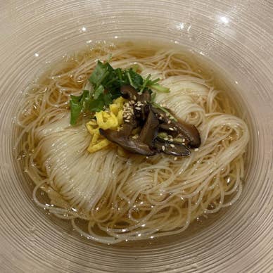 【一人でも入りやすい】 金曜夜、しかも有楽町ということで団体だらけ、または予約で満席で迷子・・・ 一人でも入りやすく、またギリギリ空いていたので伺いました。 山利のしらすと南高梅のおろしそうめん ハーフ(0.5束分)932円 オリーブ牛のカルパッチョ 1815円 オリーブ牛は少し固めですが、そうめんやさんとしては美味しい方かも。味付けは美味しいです! そうめんはしらす、南高梅がまるまる一個、みょうが、しそ、おろしで夏らしいさっぱりとした味ですごい好きです!カルパッチョたべるから0.5にしたけど、喉越しも良いので1.5でも食べられた笑 そうめん以外にもアラカルトの料理が多いので、今度は複数で行きたいです!要予約だな〜