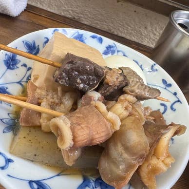 ホルモン ラーメン 居酒屋 500投稿 Makoto Oota 牛もつげんき@月島 常連の優しい人は優しい いやぁ前から行ってみたかったんですよね。牛もつげんき。厨房のみ店内の路面店です。客席は完全に路上ですから。でもこの辺は正確には私道なんでしょうか。そうじゃなかったらさすがにですよね。平日17時の訪問です。お店の前を通りかかるとカウンター席は一通り埋まっていて、お店の人に聞いてみると端のテーブルは大丈夫だとのこと。端の台みたいなところに丸イスを出して座ります。なかなかルールが難しくてよく分からないんですよね。独特過ぎますよね。 注文です。飲み物ですが「ワンカップかハイボールです。どちらに にしますか?」と言われて 「ワンカップにします」と回答。 「セットにしますか?」と聞かれて 「セットにします」と回答します。 ここで最難関の注文をクリアです。多分一見の客はセットを食べさせておくのが定石なんですよね。その後席について、待ちます。カウンター端に座っている常連っぽい若い人が割り箸くれたり、七味をくれたり、やたら優しいんですよね。なんなんでしょう。 この辺は下町情緒的なものを超えてかなり献身的なものを感じますよね。気を配ってますからね。お客は総じて常連の老人かまたは観光の人なんですが、常連客は観光の人に優しい雰囲気が総じてあります。この辺はなんなんでしょうか。 来ました。セットとワンカップ。松竹梅の天(200cc)とセット。セットの方の構成はまず煮込みがフワ、脂付きのシロ、軟骨、あとコンニャク、豆腐、ゆでたまごです。このセットだけで、そこそこありますよね。当然、串煮込みがメインです。串煮込みはまぁまぁの頻度で食べますが、おいしいです。味付けは意外と薄く、脂っこくもないので食べやすいですよね。素人的な感想だとやっぱりフワなんでしょうか。フワは串煮込み系でしかおいしくない部位ですからね。最近のコロナウィルスブームもあり、肺は強くしたい。やっぱりフワが食べたいですよね。でも脂が付いているシロが本当は好きなんですが。ゆでたまごはそのままです。これがなんで煮込まれていないのかは分からないですね。煮込みで煮込まれていないゆでたまごが来たのは初ですね。これはおそらく仕込むのを忘れたか、予期せぬ売り切れかと思います。あとは芋羊羹風のカラーリングの豆腐です。これは煮込まれていますね。 この辺をワンカップを飲みながら食べます。灰皿がテーブルに置いてありますが、この辺もさすがですよね。席でタバコが吸えるお店は、久々に見た気がします。この辺食べて終了です。 合計1110円でした。 いやぁかなり独特な雰囲気のお店ですよね。月島自体はかなり人はまばらですがこのお店の周りのみ盛況と言った感じでした。 以上ネジ3つで ラーメンLINEスタンプも販売中です パート2もあります。 ↑リンクしてます(安全) 「グルメ記事」カテゴリの最新記事 http://blog.livedoor.jp/maiden5rou/archives/55135526.html