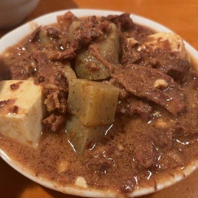 住宅街の路地裏に佇むカウンター9席の小さな煮込み専門店。メニューは煮込み・ご飯・漬物の三種のみで、店内は静かに料理と向き合える落ち着いた雰囲気です。牛肉とこんにゃく、豆腐をたっぷりと使った煮込みは、味噌と醤油ベースに生姜を効かせた汁が特徴。脂っこさがなく、ほろほろの牛肉とシンプルな具材がご飯によく合い、最後は“汁だくご飯”として掻き込むのがこの店ならではの楽しみ方。ご飯は小・並・大から選べ、並でも大満足な量。アルコール類は無いですが、テイクアウトもOK。控えめですが滋味深い味わいで、静かに食事を楽しみたい方にぴったりのお店です。