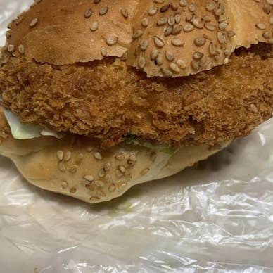 日曜日の12時にうかがいました。もうすでに空いた棚も多く少々ガラっとした感じ。皆さん早めに購入されていくんですね。 惣菜パンやサンドイッチ類が多い印象です。みんな手作り感があって美味しそうです。 できたての表示があった『コロッケバーガー』と『チョコクロワッサン』を購入しました。カレーパンが美味しそうでしたが今回は見送り。 コロッケバーガーはコロッケがデカい。パンズからはみ出しています。できたてだったためか衣がサクサク。バンズはかなり歯ごたえがあっていい感じ。ごまがたくさん乗っていて香ばしい。 こちらはクロワッサンも人気のようです。バターの風味がよく生地がサクサク。ビターなチョコレートと上にふってあるパウダーシュガーがまた美味しさをアップさせていました。
