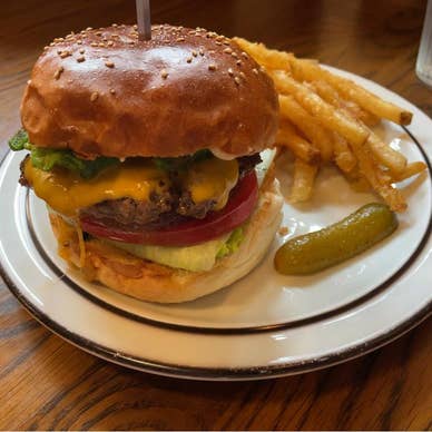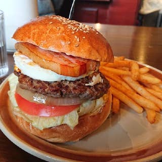 北千住の迷路のような細い道を入ったところにあるハンバーガーのお店。日曜昼で3組待ち、30分。階段を登ったところにお店があるのですが、1回登って名前を書いてから、降りて下の道で並びます。 22種類あるバーガーのうち16種類はチーズ。飲み物は350円(アルコールは450円)で別料金。ポテト、ナゲット、バッファローチキンなどのサイドもありました。 明らかにチーズ推しだけど、そのチーズを避けてクラシックバーガーにエッグとベーコンをトッピング。ファーストキッチンの影響です。 ハンバーガーとしてのレベルはかなり高いです。特にバンズが美味いです。ベーコンは塩気が強いので、入れない方がいいかも。