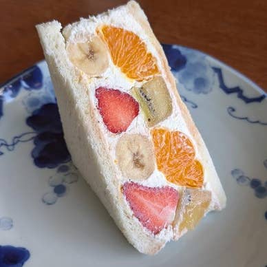 北千住の宿場町通り商店街の八百屋さんの『まるいち青果』さんに、サンドイッチがあるのを知り訪問してみました。 生クリームたっぷりのフルーツサンドがイチオシ。惣菜系の野菜サンドもあるようなのでそちらを買いに行きました。 しかし八百屋さんの店内を見回してもサンドイッチのケースが見当たりません。もしかしてと思い一旦お店の外に出て他の入り口を探すと、もう一つの入り口発見。野菜売り場の右横にありました、サンドイッチが入っているガラスケースのコーナー。 あいにく「野菜サンド」は売り切れたのか一つも残っておらず、フルーツサンドのみ。 なので『まるいちミックス580円』を購入しました。(本当はいちごサンドが買いたかったのですが780円とかなり高価でした!) フワフワのパンに挟まれたいちご・バナナ・オレンジと生クリーム。生クリームはほどよい甘さで美味しい。かなりのボリュームでしたが、ペロリと平らげました。美味しかったです、八百屋さんのフルーツサンド!