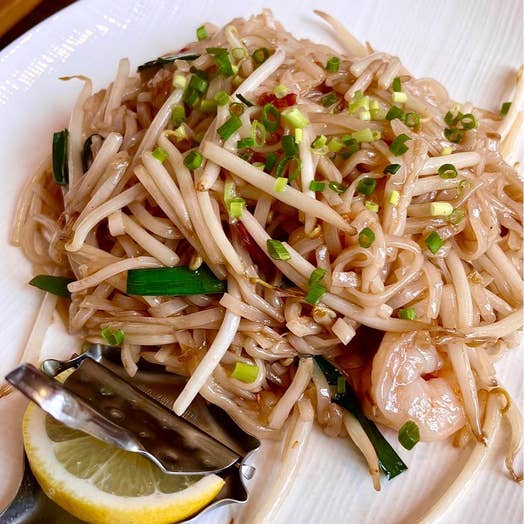 味変用の辛いタレ、パクチー、レモンを絞ると