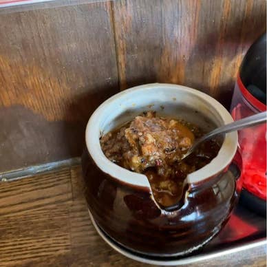 平日のお昼に立ち寄りたくなる、精肉店直営のもつ煮込み専門の食堂。L字カウンター10席ほどのこぢんまりとしたお店では、カレー・トリッパー・定番のもつ煮込みの3種からメニューを選べます。鉄鍋で提供されるカレーもつ煮込みは、弾力と柔らかさを両立した新鮮なモツがごろごろ入り、豆腐や玉こんにゃくもうれしいアクセント。家庭的なカレーの味付けでご飯がどんどん進む美味しさです。チーズとトマトのトリッパーも絶品で、思わず次回も食べたくなります。大根サラダやみそ汁が付いた定食スタイルで、ボリュームたっぷり。肉そぼろのラー油もご飯によく合い、満足度の高い一軒です。