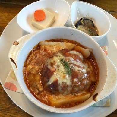 こじんまりとしたカフェ。 4人がけテーブル 2人がけテーブル×3 カウンター 2席 14時ごろ来店。主婦層で賑わっている。 店員さんは、おばちゃん1人。 感じの良い方。57歳とおっしゃってたけど、もう最近の60前後の方って普通に若いよね(´ω`)★ 注文時に、ライスの量を聞かれたので ちょい恥ずかしかったので少し大盛りにしてみた。 割と早く料理が出てきて、第一印象… 彩綺麗で美味しそう(^p^)でした(笑) 選べるメインは、今日はミックスフライとポークチェップで…悩んだけどミックスフライを注文。 エビフライ、イカフライ、白身フライが可愛らしい感じで乗ってました(´ω`) 小鉢も優しい感じのものたちだし、何より野菜がいろいろ使ってあって、家庭的な感じもした。 スープは、薄味の具なしコンソメスープ。 味噌汁飲んでみたかったなぁ。 他の食べ終わったおばあちゃん達が食器をカウンターまで運んでて、店員さんに優しいファミリー感のあるお店でした。 私も食器を運んで、カウンターのお客さんと目が合うなりニコリ(´ω`) 肌が綺麗ねぇと、お褒めの言葉をいただきました(笑) ほんわかする、良いカフェランチでした。 ちなみに、ハンバーググラタンは売切れていたので次回そちらを頼んでみたいです。 15:00までランチをやっているそうなので、のんびりしてても大丈夫(^p^)★