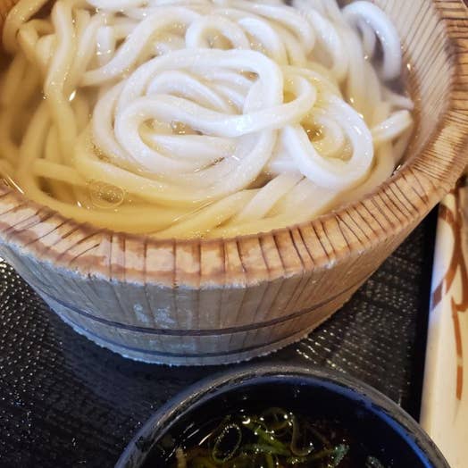うどんにはナンプラー、さとう、唐辛子が入り、そしてパクチーがトッピング!大好物のタイ風の味に