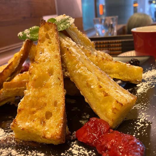アパレイユしみしみで表面は甘くハムとチーズが挟まれてて終始甘じょっぱさを味わえました