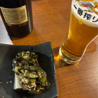 雰囲気良く日本酒いろいろ しかもわりと良心的価格 お通しの牛すじ煮込みが塩梅良く 野菜もスジもトロトロだし つゆも飲み干してしまうくらい 美味しかった お刺身は鹿児島の鰤に千葉のスズキ 焼き鳥は青森の鶏肉 ねぎま、レバー、砂肝、つくね、皮 指定なしでつくね以外は塩 珍しく気になり ガーリックポテトフライ あまりガーリック味はしない マヨとケチャップたっぷりつけて ビールが進む 自家製タルタルソース付きの大きいアジフライ 追加で手羽先 日本酒はひろき、亀齢、後は緑茶ハイやら ビールやらサワーやら マスターやスタッフの感じがよく また行きたいお店に加わりました