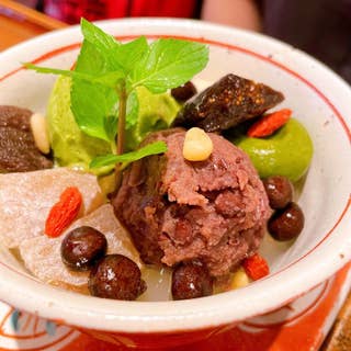昨日訪問しました。 友人がランチの時間帯は空くと踏み、すぐに入ることができました。 あんみつを目当てに来たので、ぜんざいやちまきセットは今回はパスし早々に注文(お抹茶と最中、甘酒、その他諸々も大変気になるものでした)。 あんみつは塩あんみつと甘露あんみつの2種類があり、夏を意識して塩あんみつにしました。 中のアイスはバニラと抹茶のどちらかを選べます。友人は抹茶、私はバニラにしました。 塩入りの餡子が絶妙で、餡にしても黒蜜にしても甘すぎずとても食べやすかったです。 あんみつにありがちな、アイスや黒蜜と溶け合ったフルーツや寒天による出汁が塩餡子のおかげで残り汁まで美味しくいただけました。 餡子はもちろん白玉と求肥も手作りで、いちぢくや杏、使う食材は有機栽培に拘り、この塩餡子は作り方もとても拘られているそうです。 更に出されるお茶は三年番茶という、三年寝かせたお茶を使っていて、淹れる際は45分蒸してからお出しするそう。 使われている食器までも拘りがあるらしく、とにかく拘り抜いた逸品をいただける場所です。 外観もお店の中も惹かれるものがあります。 次訪れても塩あんみつを注文してしまいそうですが、他のメニューもとても美味しそうなので、次は別のメニューに挑戦したいです。