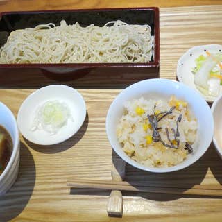つくねせいろセット 1100円を頂きました。 蕎麦は蕎麦粉の味があまりしないさっぱり系。お店の自家製だそうです。 ツユにつけると、ツユの味がしっかりとのり喉越しが良く美味いです。 セットのグリーンピースのご飯が、これまたさっぱりした絶妙の塩加減で美味しくて、このグリーンピースご飯もまた主役級の逸品です。 何を食べても美味しそうなので、夜に蕎麦屋飲みをするのも良さそうです。 ■追記: とろろ(うずらの卵付き)せいろいただきました。1500円なり。 せいろ800円、おかわりのせいろが600円なので、とろろとうずらだけで700円上がるのは高いなあと思いましたが、夏はネバネバが食べたくなるので、思い切って注文。 とろろの他になんか小鉢でもつくのかなと淡い期待をしてましたが、見事にとろろだけです笑 でも、「高いなあ」と思った前言撤回。 このとろろめちゃくちゃ美味かったです。 さらさらとネバネバが適度なバランスになってるおろし具合、味もさっぱりで多分良いとろろ使ってて、それを料理の腕でさらに引き上げてる感じ。 同じもの買ってきて家ですってもこうはならない笑 また食べたい逸品となりました。