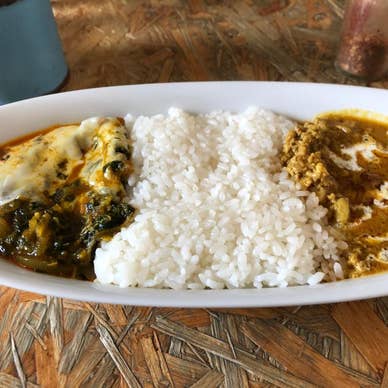 JR市ヶ谷駅から歩いて10分ほど、左内坂という急な坂を上ったところにあるカレー屋さん。 店内はカフェのようなポップな色使いでかわいい。神宮前にあった伝説のカレー屋「GHEE」の流れを汲んでいるらしい。 ビーフカレーとキーマカレーの合いがけを注文。ご飯の量も選べます。 ビーフカレーは甘さゼロでシャープな辛さ!かなりシャバシャバでスープみたい。食べていると汗をかくくらいスパイシーでクセになりそうな美味しさ。 一方のキーマカレーは、コーンが入って優しいです。 定番のバターチキンやほうれん草カレーのほか、麻婆豆腐カレーなどの変わり種も。 めちゃくちゃ本格的で美味しいのに、みんな急な坂を上りたくないのかいつもあまり混んでない、穴場なカレー店です。ごちそうさまでした。