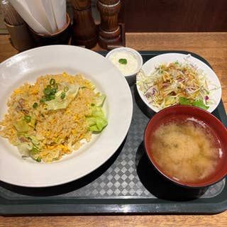 ランチメニューはチャーハンが5種類、日替り・月替りのチャーハンもありましたが、定番の焼豚とレタスのチャーハンにしました。セットにはサラダ・味噌汁・杏仁豆腐が付いてます。パラパラ系の美味しいチャーハンでした。 チャーハン 1,000円