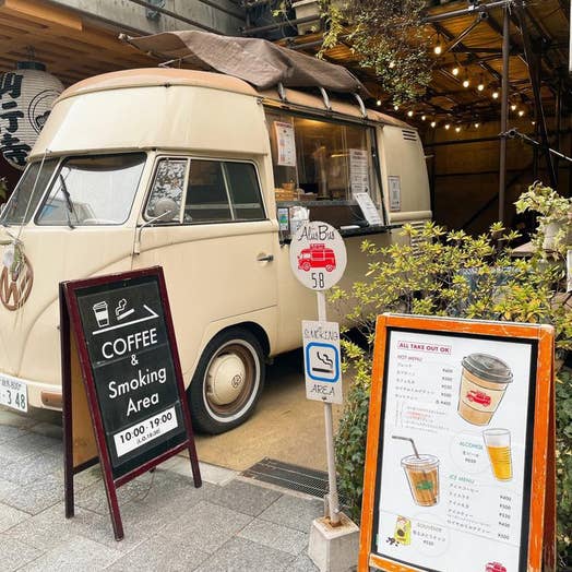 クリーム色のフォルクスワーゲンのワゴンが目印のカフェ。