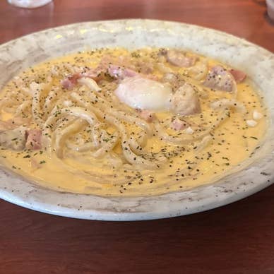 ⏰今回のお店は 池袋にある 創作うどん居酒屋の あんぷく さんで オーダーしたのは 3種のチーズの カルボナーラうどんに 鶏肉をトッピングしました⚽️ このお店 以前はランチでも サイドメニューが 充実していたんですが 最近はうどんだけになったようで ・・・少し残念かもですw とは言え うとんの美味しさは相変わらずで 今回もこのお店の 名物的なメニューの 3種のチーズの カルボナーラうどんで チーズがタップリと使われていて その効果で 濃厚な旨味を堪能出来るのと チーズのおかげで 美味しい汁が よく絡んで そして乗せられた半熟卵が 味わいの濃厚さと 汁をさらに絡みやすくしていて かなり美味しい仕上がりの うどんメニューで そこに さらに鶏肉を トッピングしたんですが 個人的に好みな感じに 仕上がったメニューで 自分がこのお店で頼むなら このメニューってくらい お気に入りなメニューなのと 鶏肉のトッピングも 個人的にマストな感じかなと⛔️