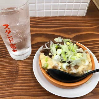 浜松町で仕事だったので浜松町のスタンド富士にしようかと思って検索したら池袋にもあったのでこっちで飲みました。 チューハイを頼んでから選んだつまみは名物の肉豆腐と生ピーマン。 肉豆腐は各テーブルのほとんどの人が食べてました。 肉豆腐は豆腐、牛すじ、ねぎですが、牛スジがトロトロに煮込まれており味付けも良くて酒が進みます。 後から来た生ピーマンは胡麻油と塩で和えてあって苦味が全くなくて自分でも作れるなと思いました(笑)