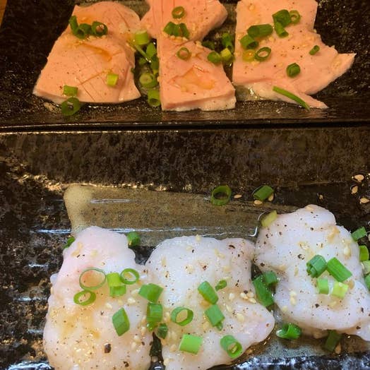 お肉の部位は、タン、トモサンカク、中落ち、カルビ、上カルビ、いのうえロース、ロース、鶏肉、ホルモンの9種と、