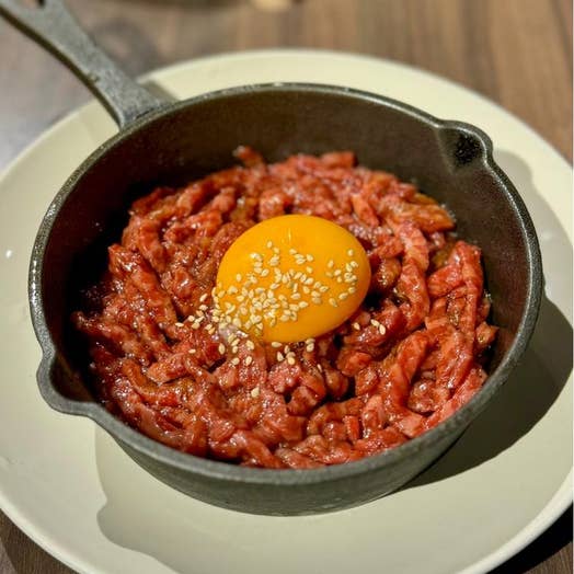 プレミアムランチコースをいただきましたが、気になった瞬間燻製炙りユッケも追加注文しました。