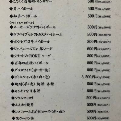ドリンクメニュー