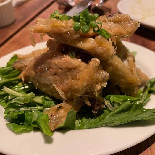 極上のごま油香るタレが、しっとり柔らかい鶏肉に絡み、骨からスルッと外れるほどのほろほろで柔らかい食感がたまらない!「ジュワッ」と溢れる旨味に感動します!