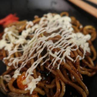前から気になってた焼きそば専門店に! 平日の15時なのにも関わらず賑わう店内。 スタンダードな焼そば750円を注文。 ランチタイムというところでドリンクをサービス。烏龍茶かコーラを選べます。 待つこと五分 出ました!昔ながらの焼そば。 麺は太麺でソースとよく絡み合ってめちゃめちゃ美味い! 夜はビールも飲めるのでちょい飲みにも最適! 週末子供を連れてまた来ます。 ご馳走さまでした!
