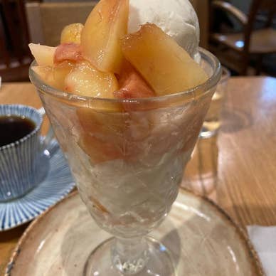 桃パフェとコーヒーをいただきました。 居心地が良く すっかり長居してしまいました。 パフェもコーヒーも おいしかったです。